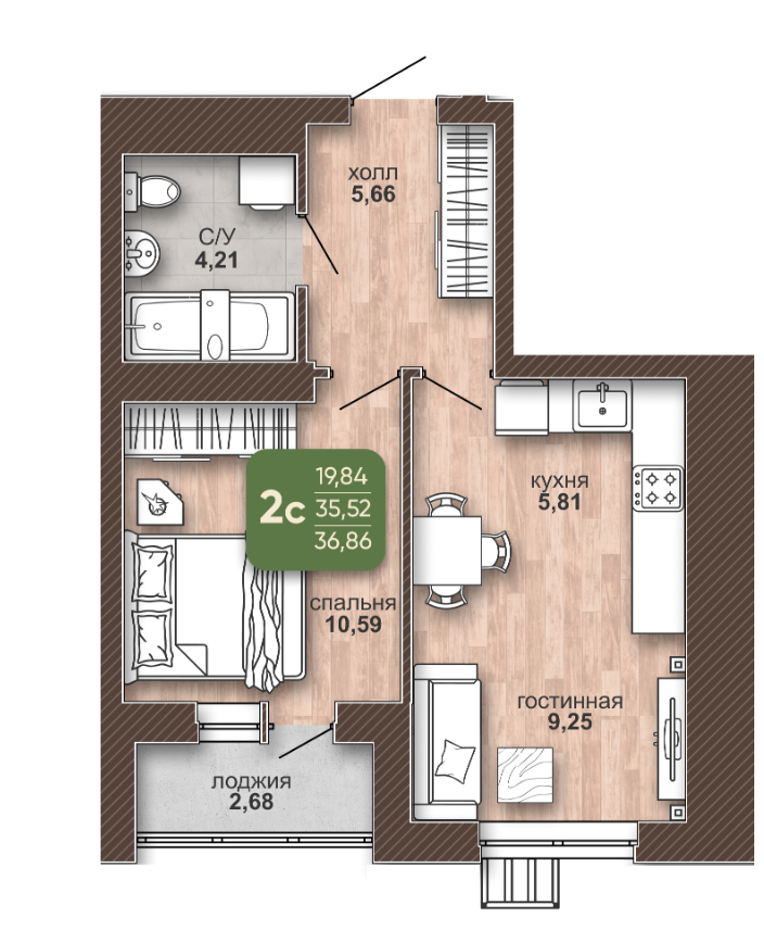 19.84 м²