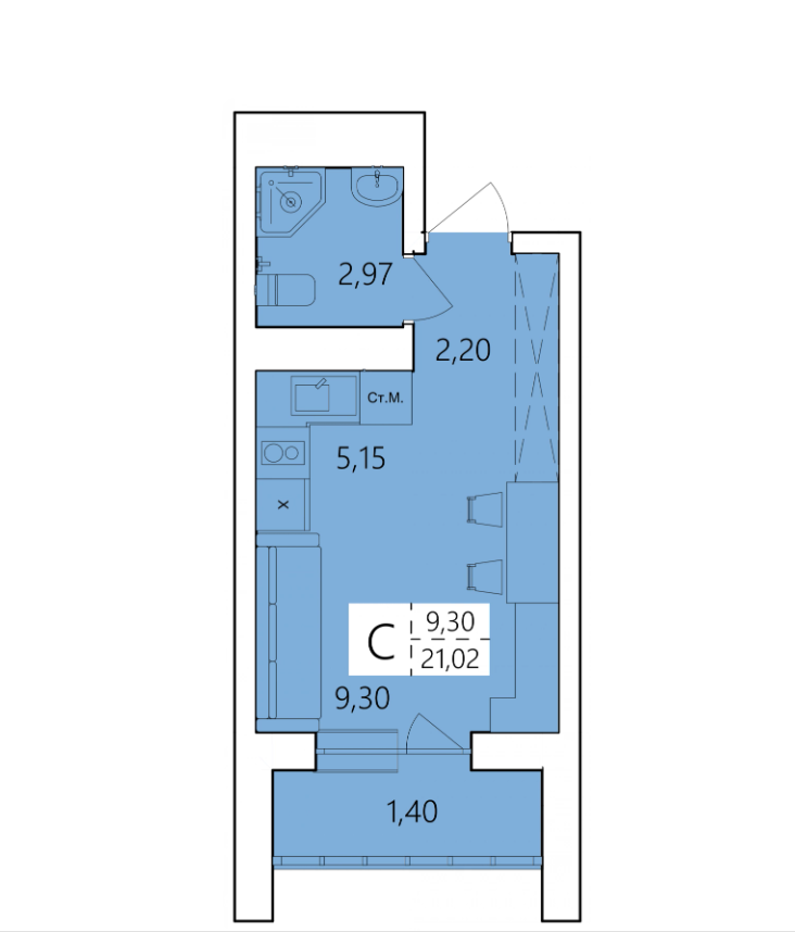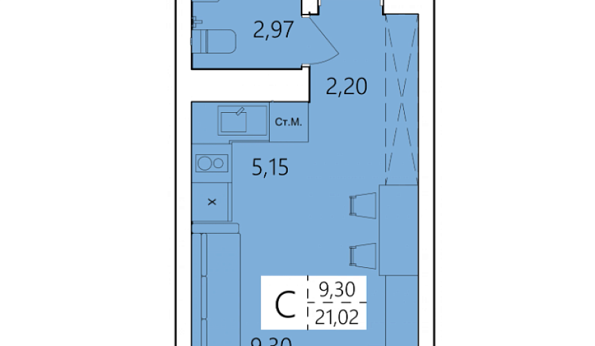 21.02 м²