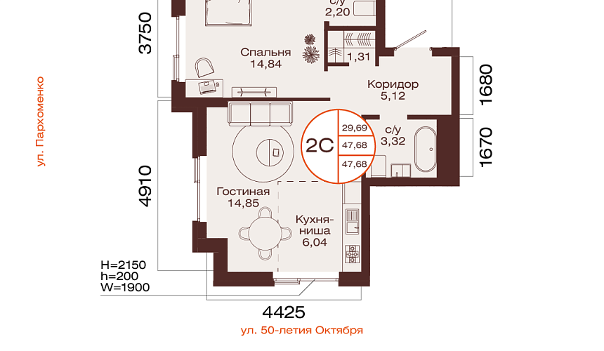 47.68 м²