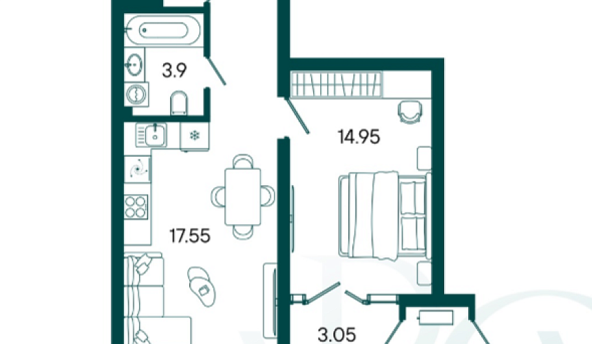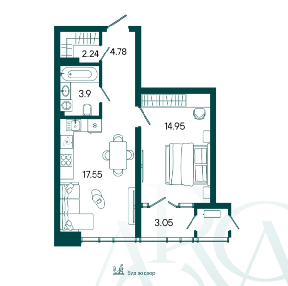 14,95 м²