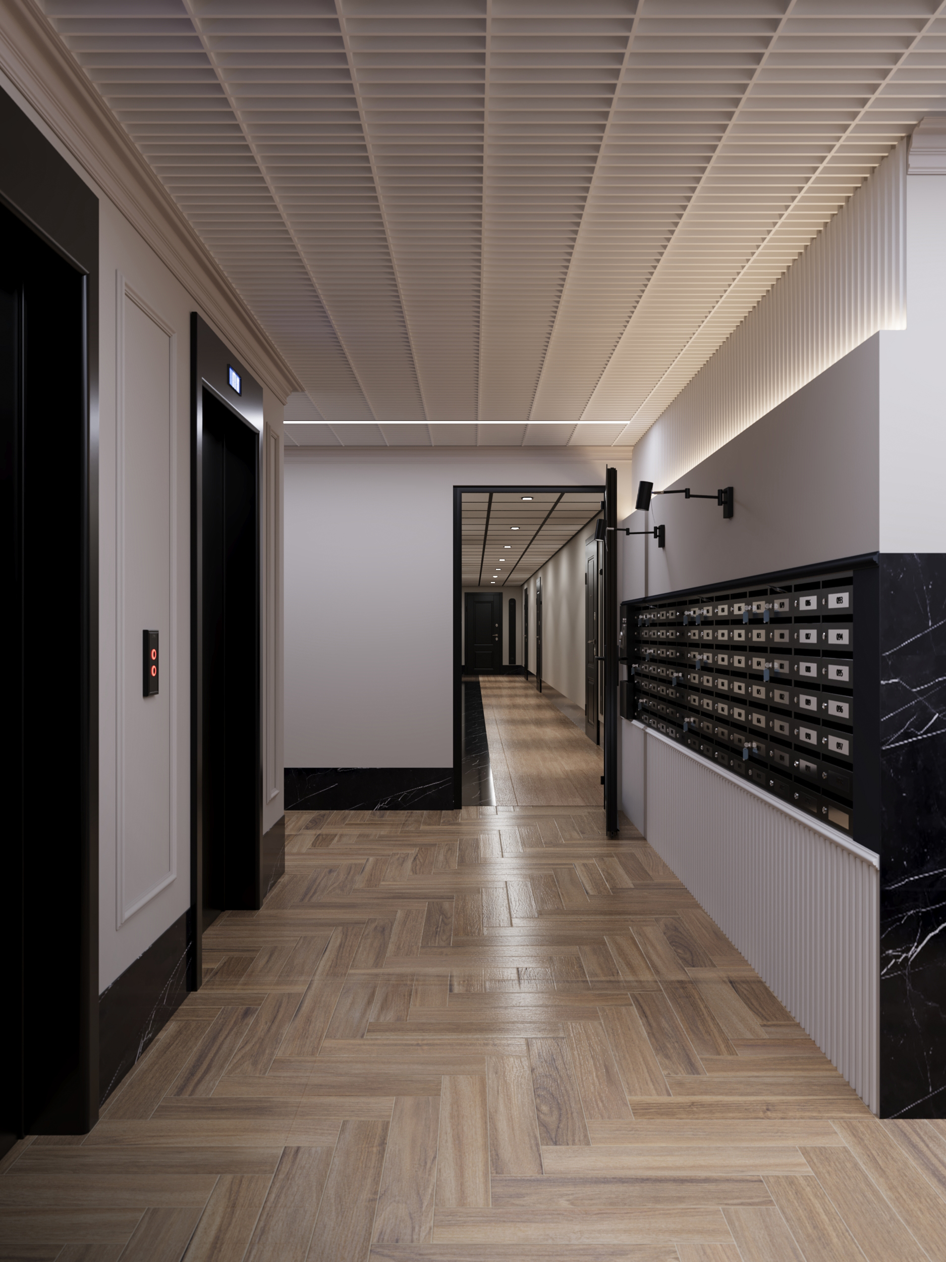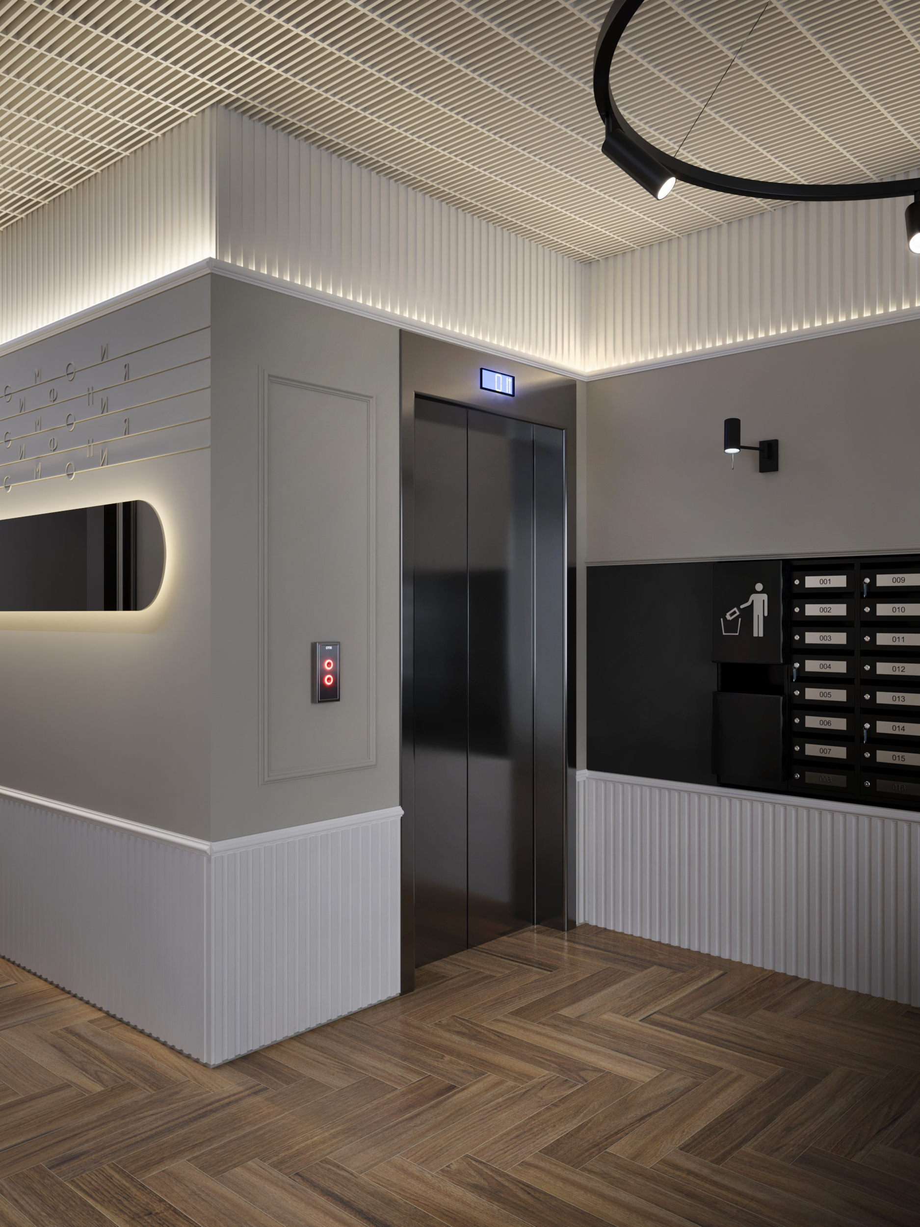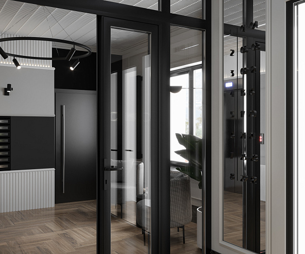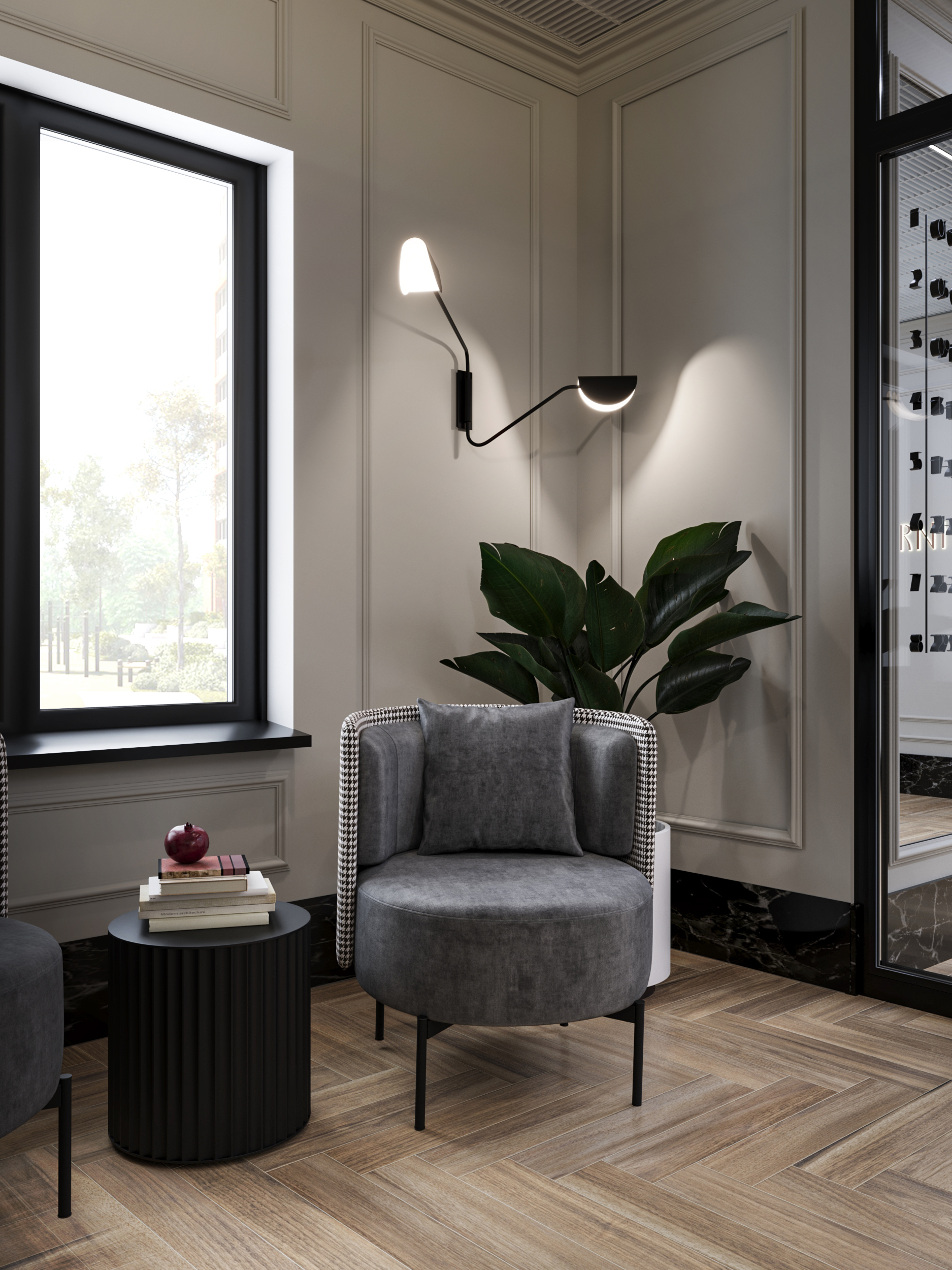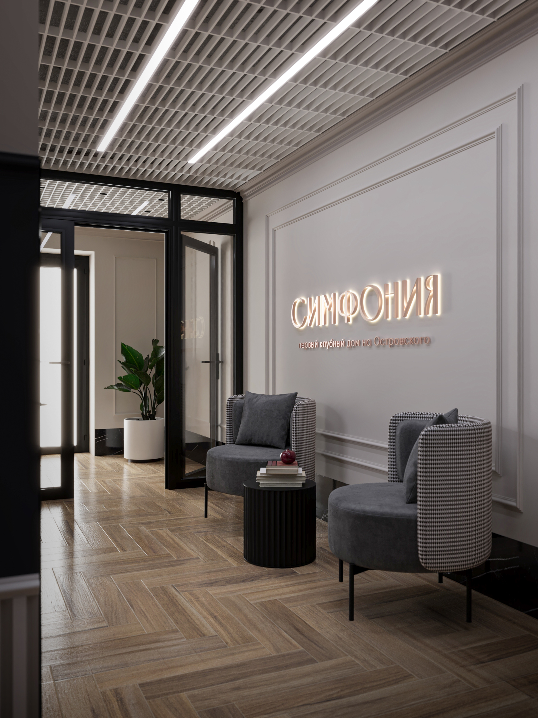Фасад здания оформлен в стиле неоклассицизма с четкими линиями, изящными декоративными деталями и спокойными природными оттенками.